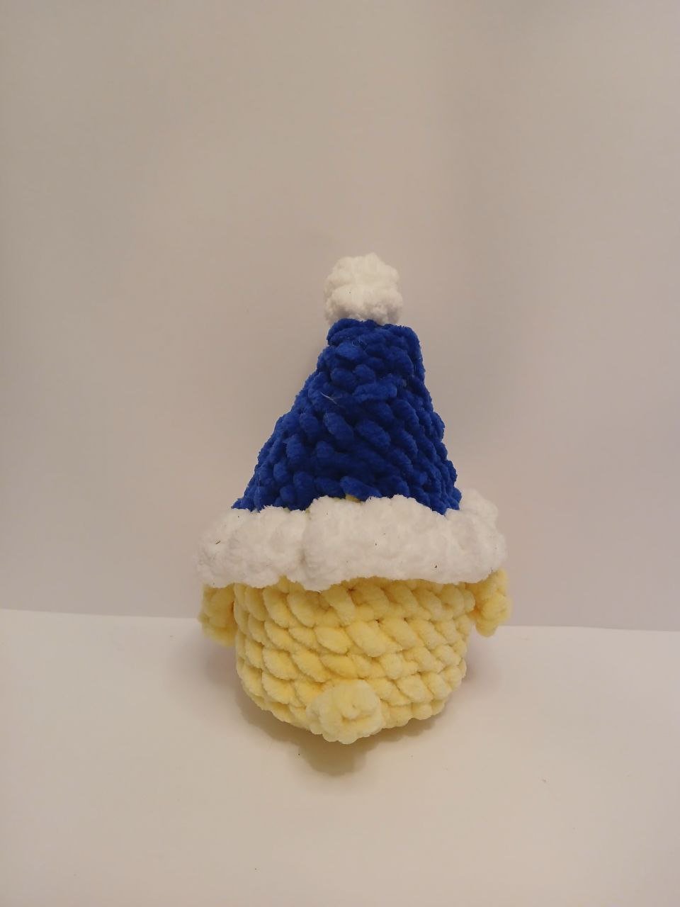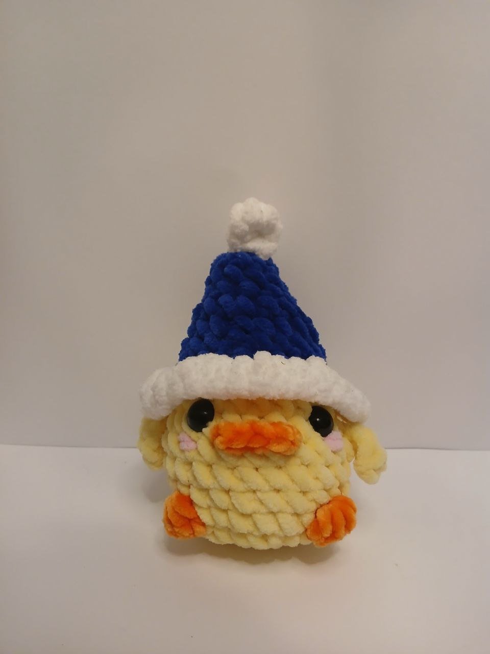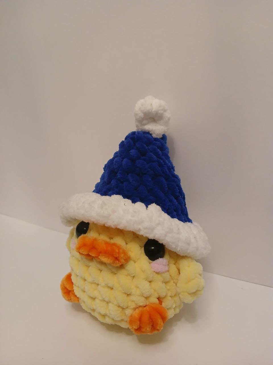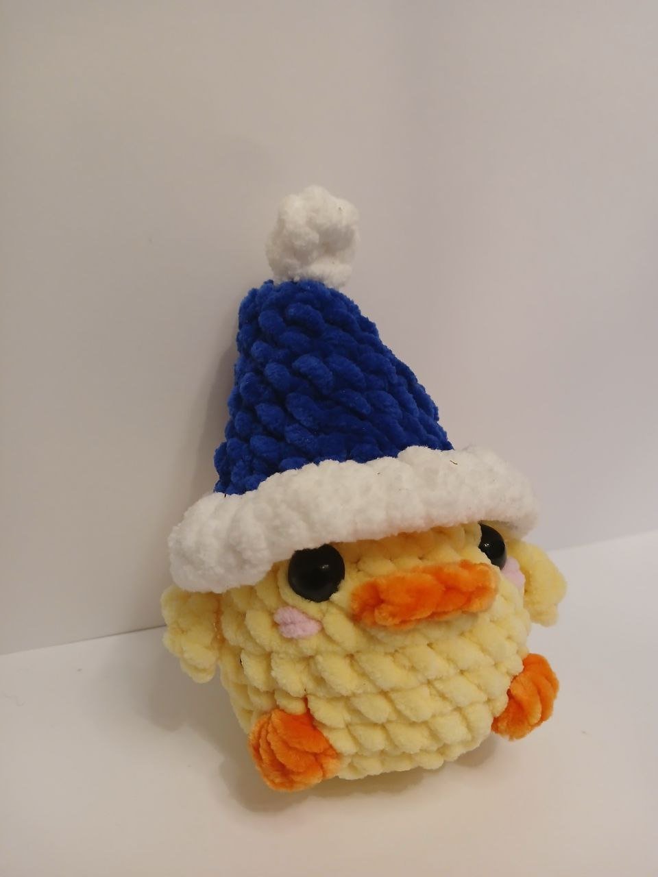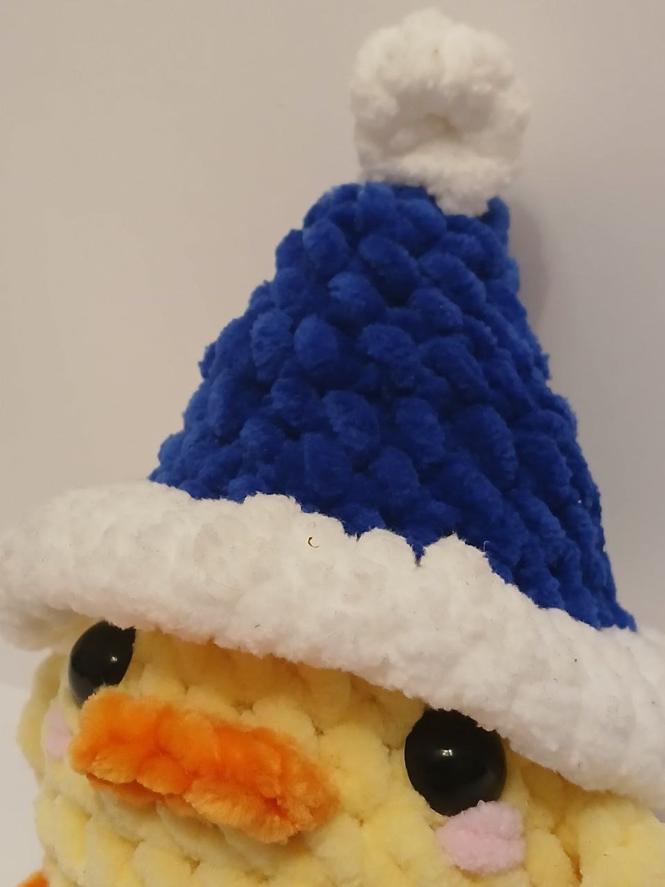 Boneco decorativo de patinho em croché artesanal, criado com atenção aos detalhes e com materiais macios ao toque. Um acessório perfeito para complementar a decoração de Natal e criar um ambiente festivo.